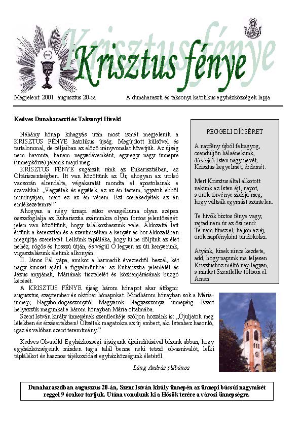 Krisztus Fénye 2021 Magyarok Nagyasszonya ünnepe